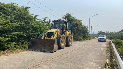 2. เจ้าหน้าที่ภาคสนามกองช่างสุขาภิบาล เข้าดำเนินการเคลียริ่งไหล่ทางและตัดต้นไม้