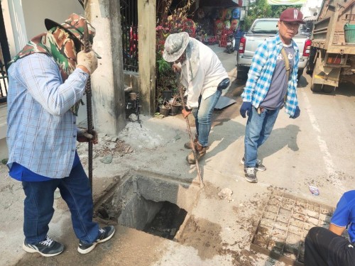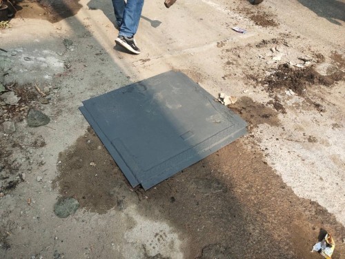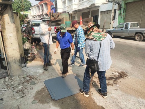 เข้าดำเนินการเปลี่ยนฝาท่อระบายน้ำ บริเวณถนนประสาทวิถี ก่อนถึงป้อมตำรวจจราจร