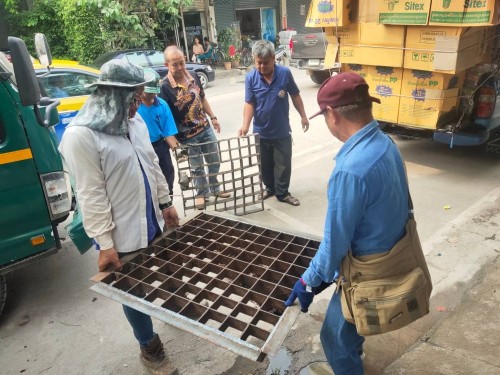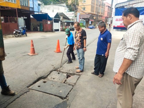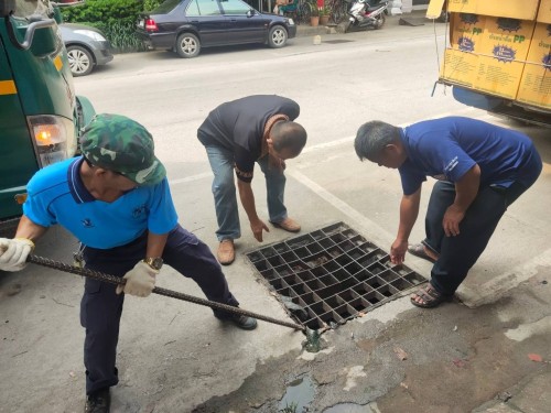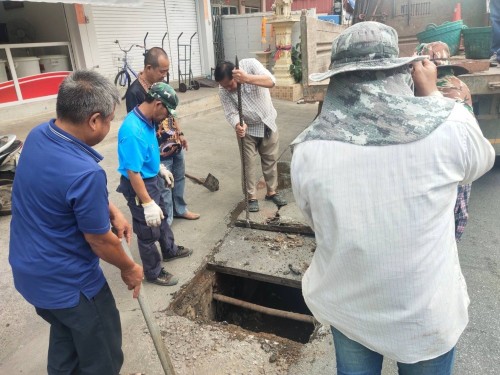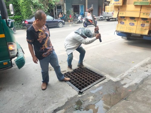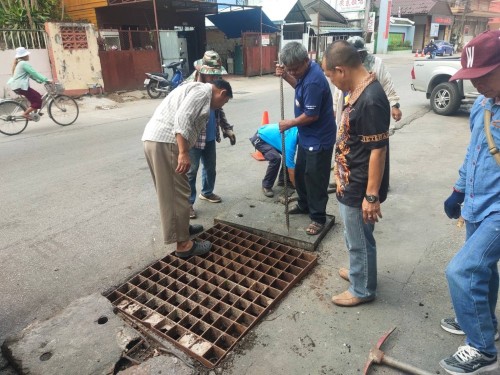 เจ้าหน้าที่ภาคสนามกองช่างสุขาภิบาล เข้าดำเนินการเปลี่ยนฝาท่อระบายน้ำ