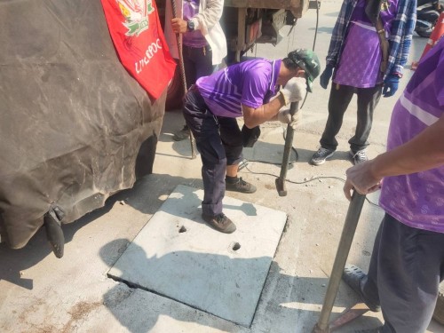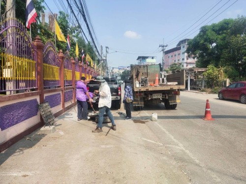 1. เจ้าหน้าที่ภาคสนามกองช่างสุขาภิบาล เข้าดำเนินการซ่อมแซมขอบบ่อฝาท่อระบายน้ำพร้อมเปลี่ยนฝาท่อใหม่