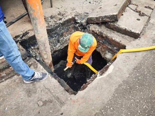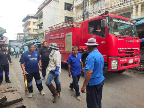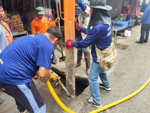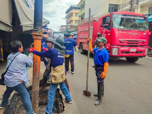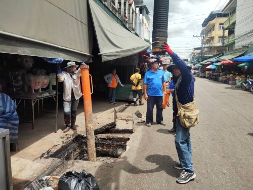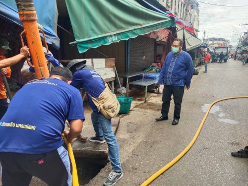 2. เจ้าหน้าที่ภาคสนามกองช่างสุขาภิบาล เข้าดำเนินการดูดโคลนลอกท่อระบายน้ำ ภายในตลาดสดพาเจริญ