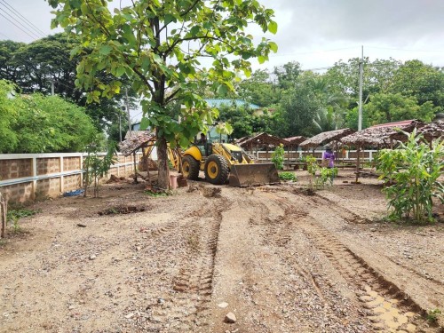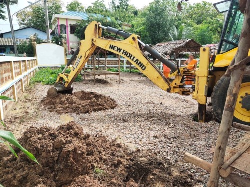 1. เจ้าหน้าที่ภาคสนามกองช่างสุขาภิบาล เข้าดำเนินการขุดหลุมวางท่อทำส้วมซึม ภายในวัดสักทอง