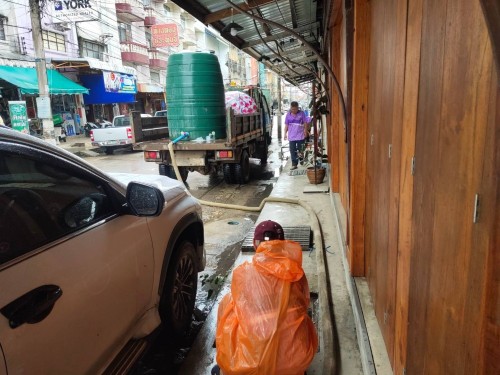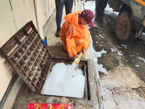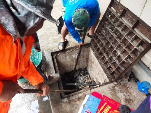2. เจ้าหน้าที่ภาคสนามกองช่างสุขาภิบาล เข้าดำเนินการลอกท่อระบายน้ำพร้อมลงสารน้ำ EM