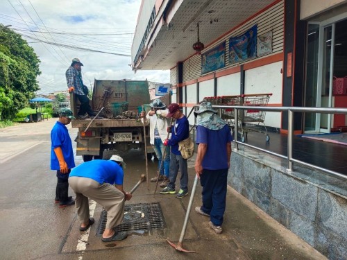 เข้าดำเนินการลอกท่อระบายน้ำ บริเวณถนนสายแม่สอด – แม่ตาว (หน้าร้านไทยแสงทองบ้านโต้ง)