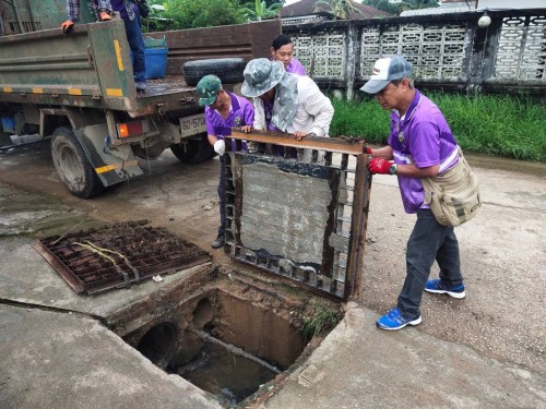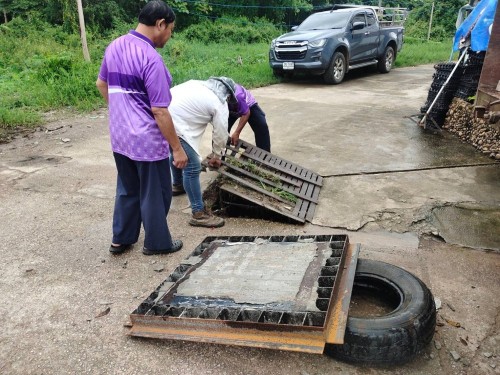 เข้าดำเนินการเปลี่ยนฝาท่อระบายน้ำ บริเวณชุมชนสองแคว 1