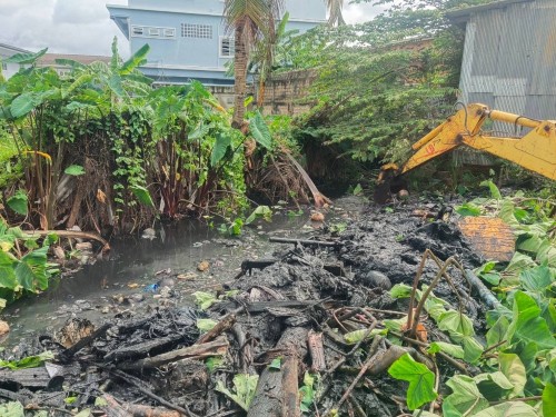 เข้าดำเนินการขุดลอกเศษวัชพืชในลำรางสาธารณะ บริเวณมัสยิดโดมทอง (สนามโหด) ชุมชนอิสลาม