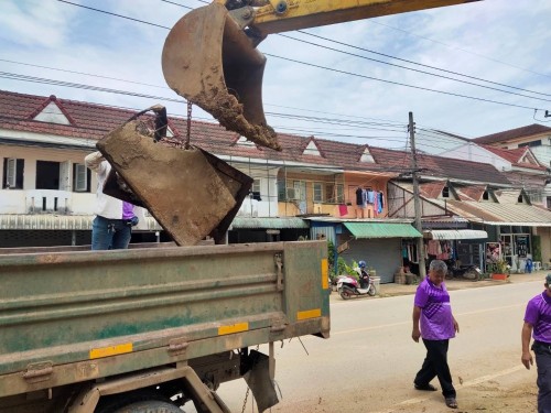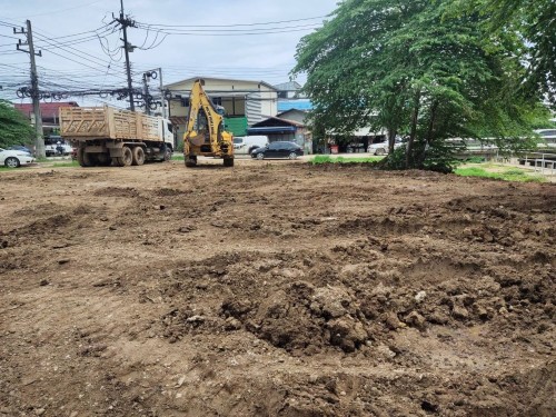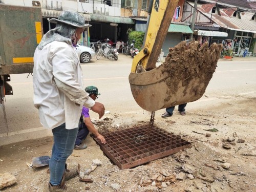 2. เจ้าหน้าที่ภาคสนามกองช่างสุขาภิบาล เข้าดำเนินการปรับเกลี่ยกองดิน ชุมชนร่วมแรง