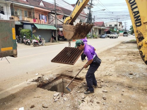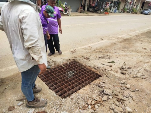 1. เจ้าหน้าที่ภาคสนามกองช่างสุขาภิบาล เข้าดำเนินการดำเนินการเปลี่ยนฝาท่อระบายน้ำ