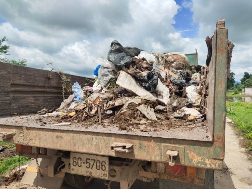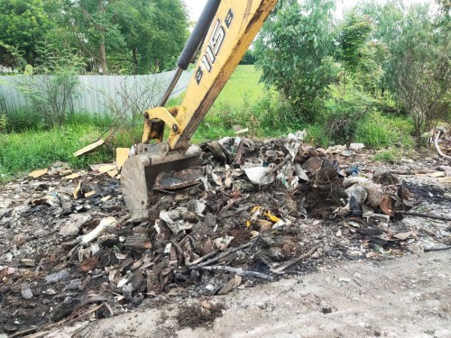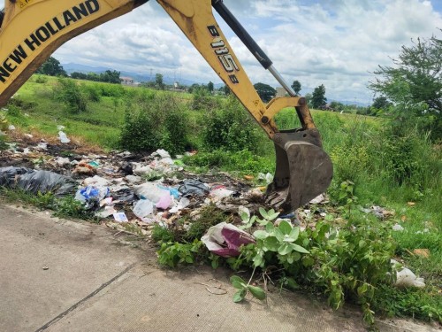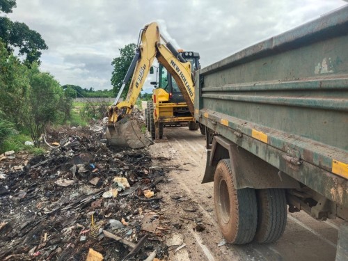 เข้าดำเนินการตัก ขนทิ้ง กองขยะและเศษวัชพืช บริเวณถนนเรียบคลองชลประธาน หลังหมู่บ้านมั่งคง 2