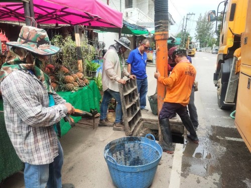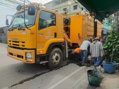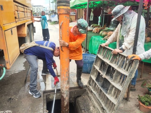 เข้าดำเนินการดูดโคลนลอกท่อระบายน้ำ บริเวณถนนชิตวนา (โรงเรียนเทศบาลวัดมณีไพรสณฑ์)