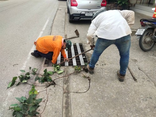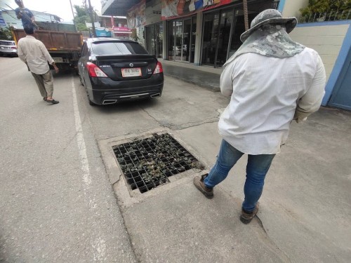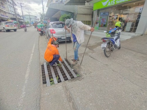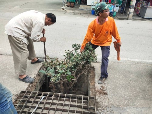 เข้าดำเนินการลอกท่อระบายน้ำ ตัดกิ่งไม้ ตักขยะภายในท่อ บริเวณหน้าร้านแม่เมยเฟอร์นิเจอร์
