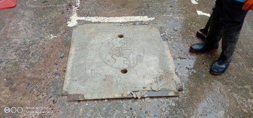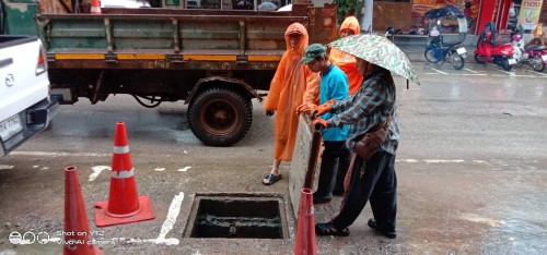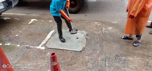 เข้าดำเนินการใส่ฝาท่อระบายน้ำใหม่ (กรณีสูญหาย) บริเวณหน้าร้านขายข้าวมันไก่ 4 แยกลักกี้