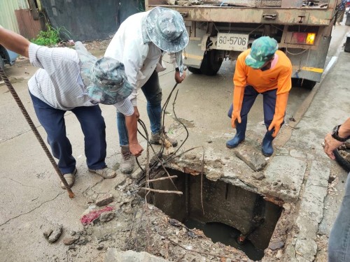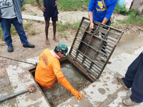 2.เข้าดำเนินการทะลวงท่อระบายน้ำ บริเวณหน้าโรงเรียนราษฎร์วิทยา (ตี่มิ้ง)