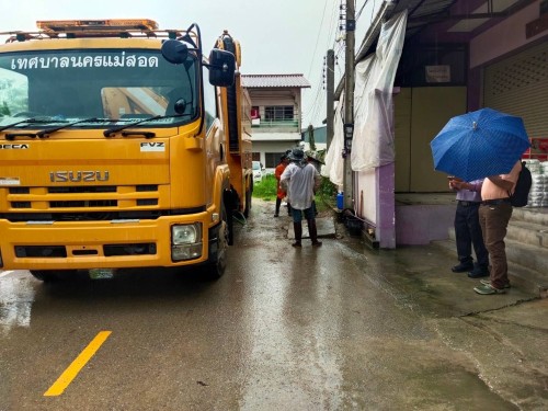 เพื่อทำการติดตั้งเครื่องสูบน้ำ บริเวณถนนชิตวนา ซอยโกดังมะเท หน้าโรงเรียนแม่สอด