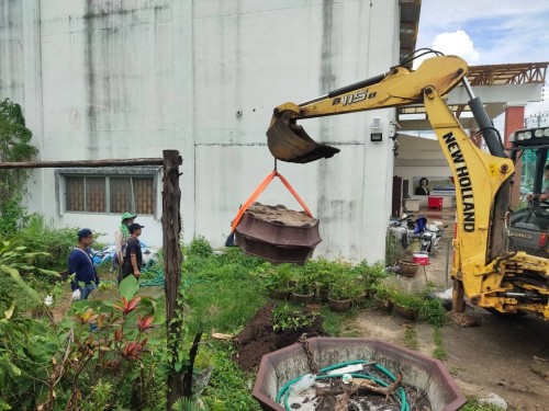 2. เจ้าหน้าที่ภาคสนามกองช่างสุขาภิบาล เข้าดำเนินการปรับปรุงภูมิทัศน์ บริเวณภายในสนามแบดมินตัน