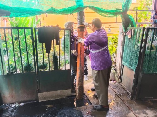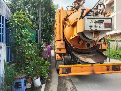 เข้าดำเนินการดูดโคลนลอกท่อระบายน้ำ บริเวณปากทางเข้าหมู่บ้านตาลเดี่ยววิลล่า ชุมชนตาลเดี่ยว