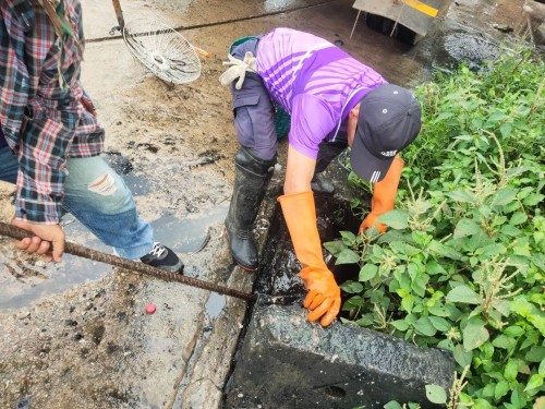 เข้าดำเนินการแก้ไขปัญหารางระบายน้ำอุดตัน บริเวณชุมชนอิสลาม สามแยกสนามโหด