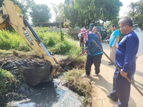 พนักงานกองช่างสุขาภิบาล ได้นำรถตักฯขุดร่องระบายน้ำ บริเวณ ซอยหอพักลุงต๋อย ชุมชนสองแคว 2