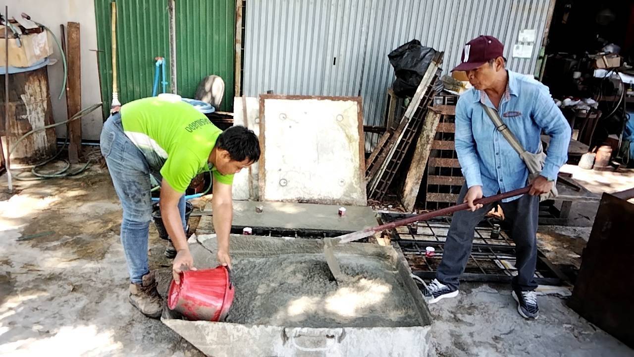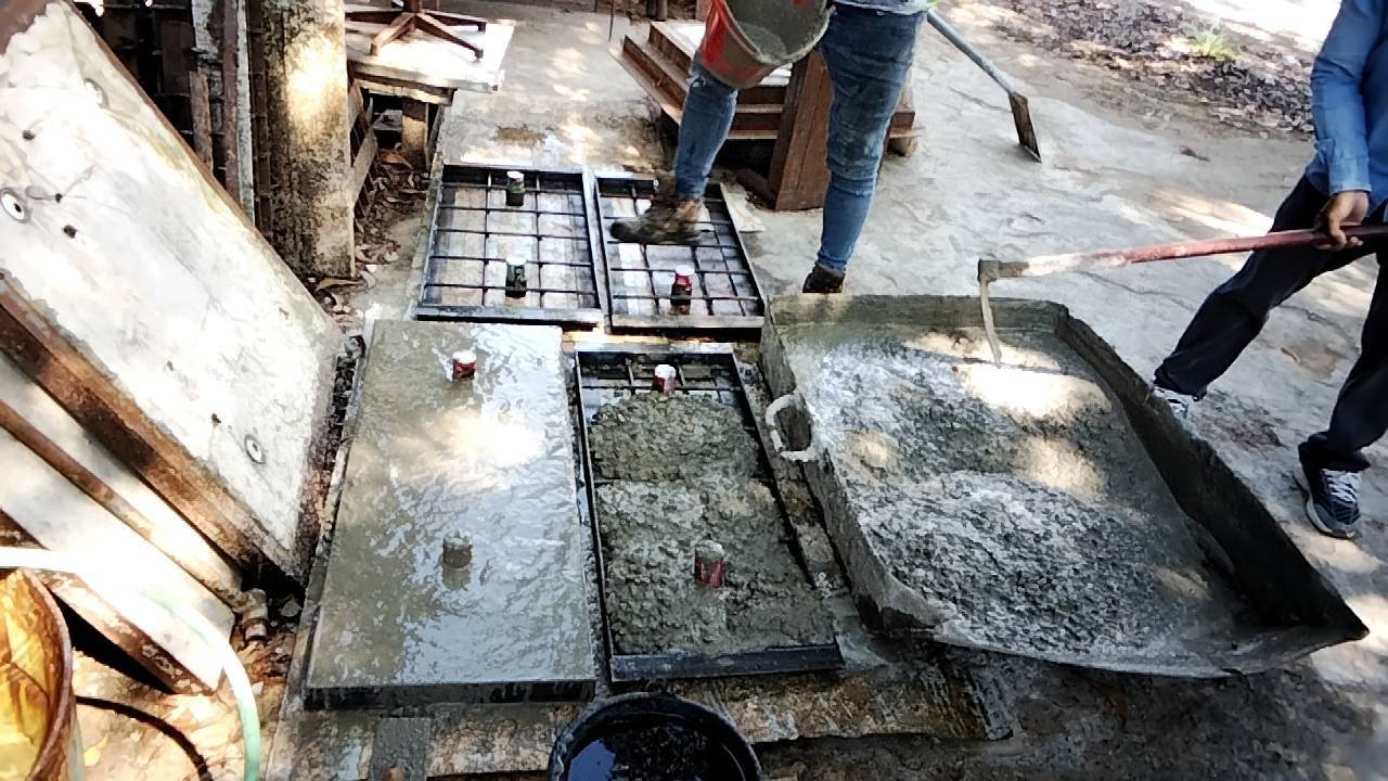 พนักงานภาคสนามกองช่างสุขาภิบาลได้ดำเนินการ ตีแบบ และขึ้นโครงพร้อมเทปูนซีเมนต์ฝาท่อระบายน้ำ ในชุดที่ 2 จำนวน 4 ฝา ของในหมู่บ้านในฝัน ชุมชนร่วมแรง
