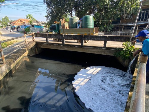 พนักงานกองช่างสุขาภิบาล ได้นำน้ำหมัก EM ลง บริเวณศาลปู่แดง จำนวน 2 ถัง 4,000 ลิตร