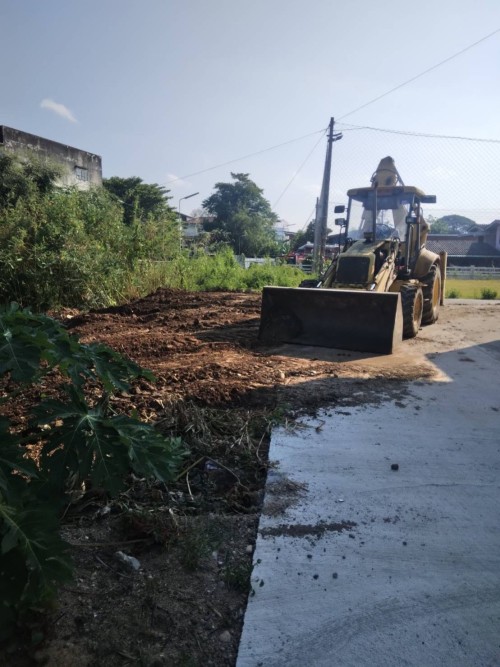 ไถปรับกองดิน บริเวณบ้านพักตำรวจ
