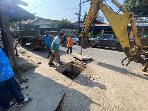 2. เปลี่ยนฝาท่อระบายน้ำ บริเวณเยื้องวัดอรัญญเขต จำนวน 2 ฝา