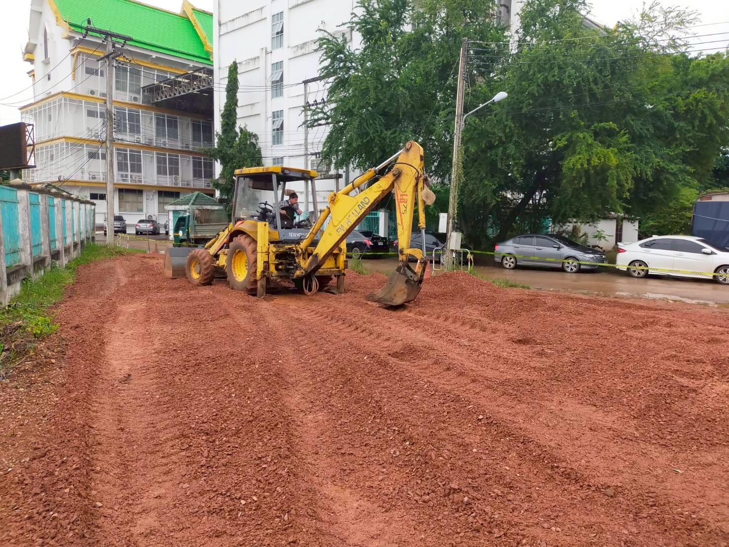 2. ได้เข้าดำเนินการไถปรับดินทำลานจอดรถ บริเวณหลังสำนักงานเทศบาลนครแม่สอด