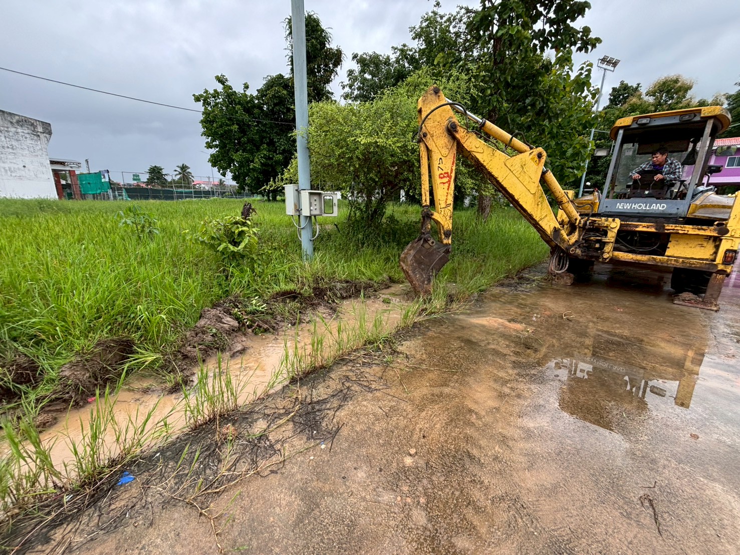 3. ได้เข้าดำเนินการขุดทำร่องระบายน้ำ บริเวณถนนหน้าสนามเทนนิส สนามกีฬา 5 อำเภอชายแดน