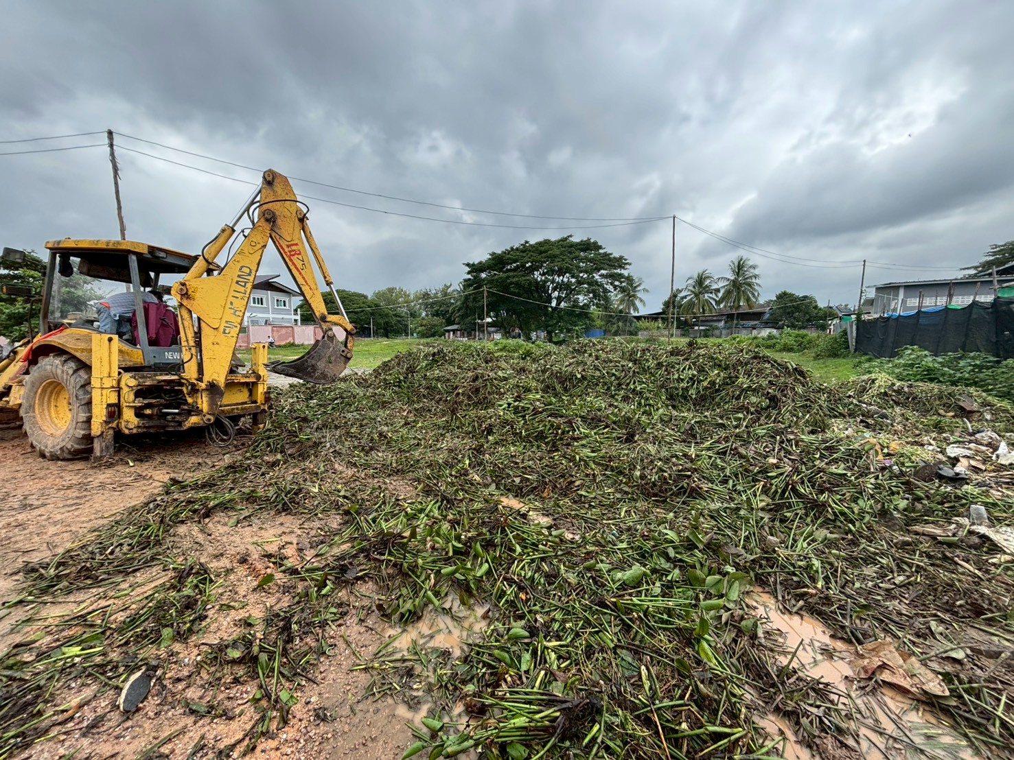 1. ได้เข้าดำเนินการปรับเกลี่ยเศษวัชพืช อำนวยความสะดวกให้ อบจ. ในการขุดลอกผักตบชวา บริเวณเลียบคลองชลประทาน