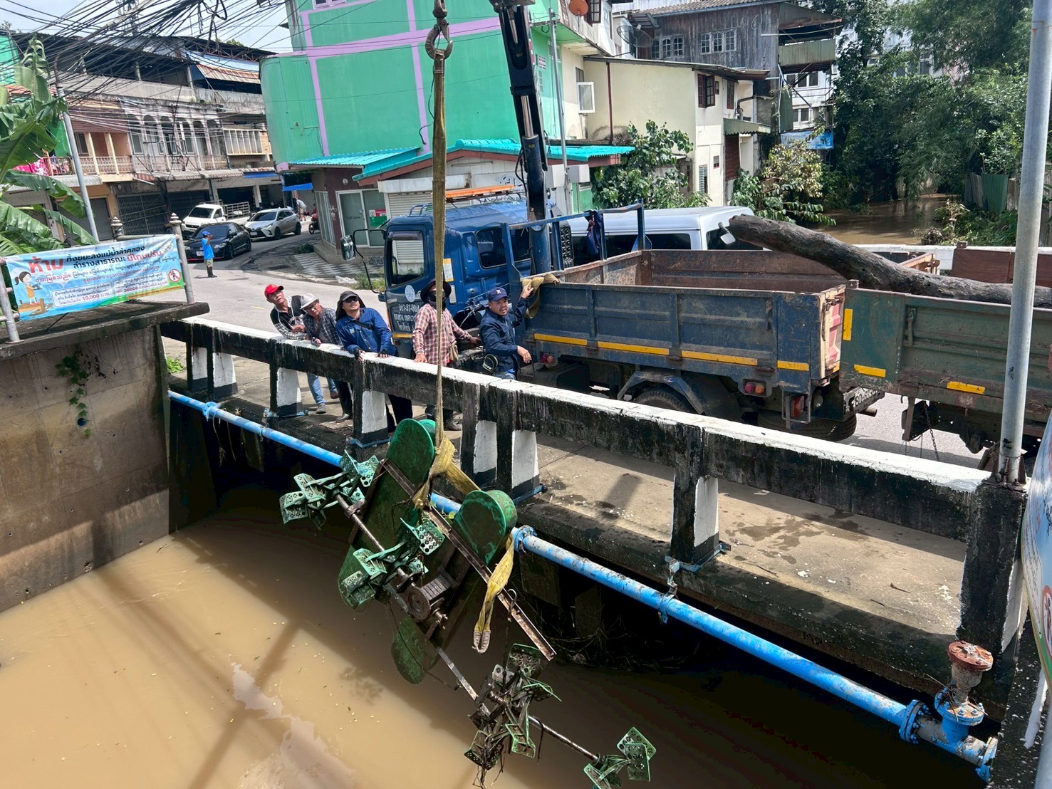 4. ได้เข้าดำเนินการนำเศษขยะและกิ่งไม้ที่กีดขวางกั้นทางน้ำ ออกจากลำห้วยแม่สอด ร่วมกับเจ้าหน้าที่กองช่าง บริเวณใต้สะพานร้านจงมั่นคง