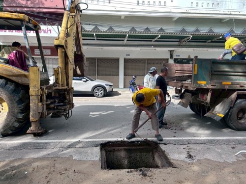 2. ได้เข้าดำเนินการเปลี่ยนฝาท่อระบายน้ำ บริเวณหน้าโรงพยาบาลแม่สอด