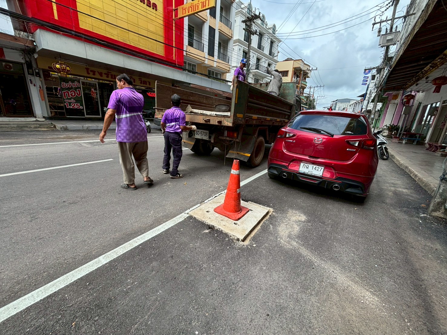 3. ได้เข้าดำเนินการเปลี่ยนฝาท่อระบายน้ำถนนประสาทวิถี บริเวณร้านพีเอ็นอิเล็กทรอนิคส์ 2