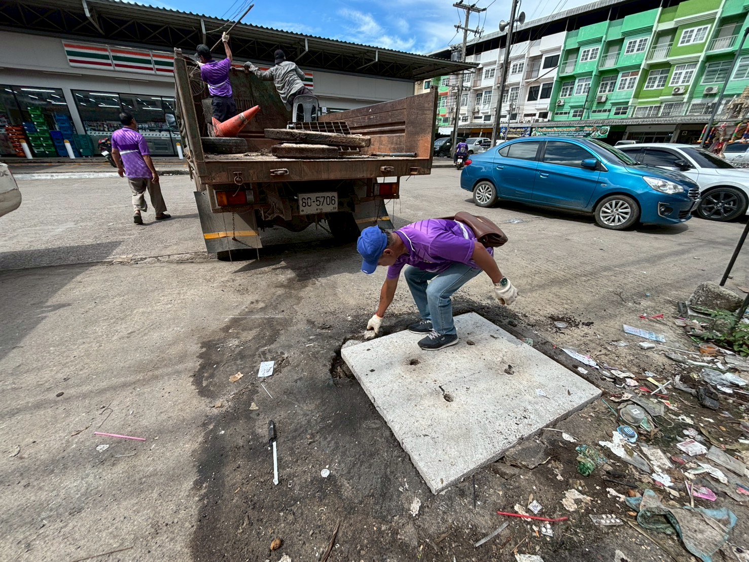 7. ได้เข้าดำเนินการเปลี่ยนฝาท่อระบายน้ำ บริเวณหน้าเซเว่นท่ารถแม่ระมาด