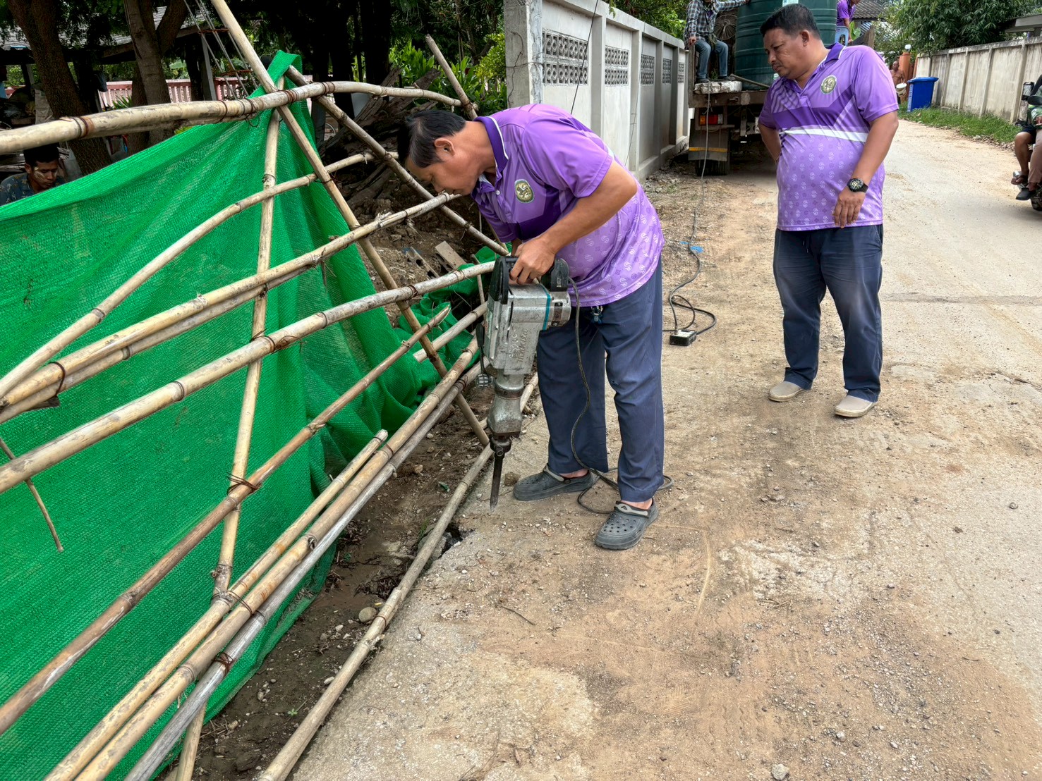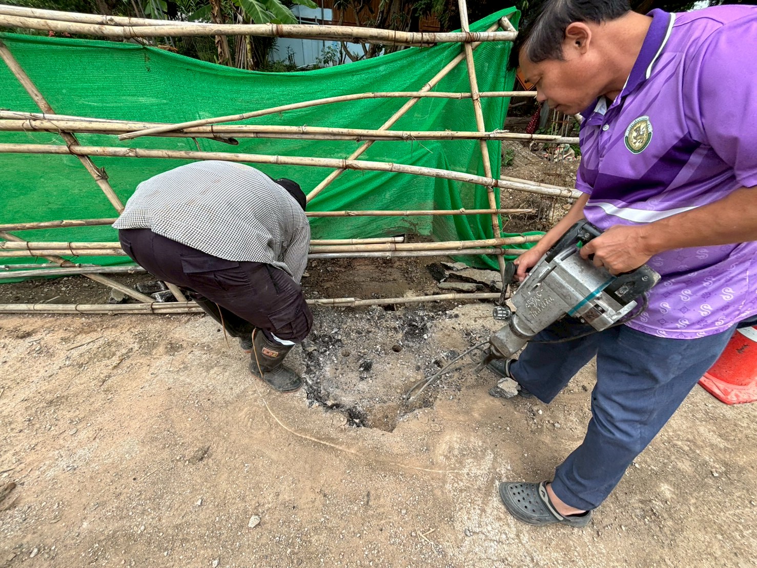 2. ได้เข้าดำเนินการเจาะถนนที่เททับฝาท่อระบายน้ำ เพื่อวัดขนาดและดำเนินการหล่อฝาท่อใหม่ทำเป็นฝาตะแกรงเหล็ก บริเวณสะพานชุมชนสองแคว 1