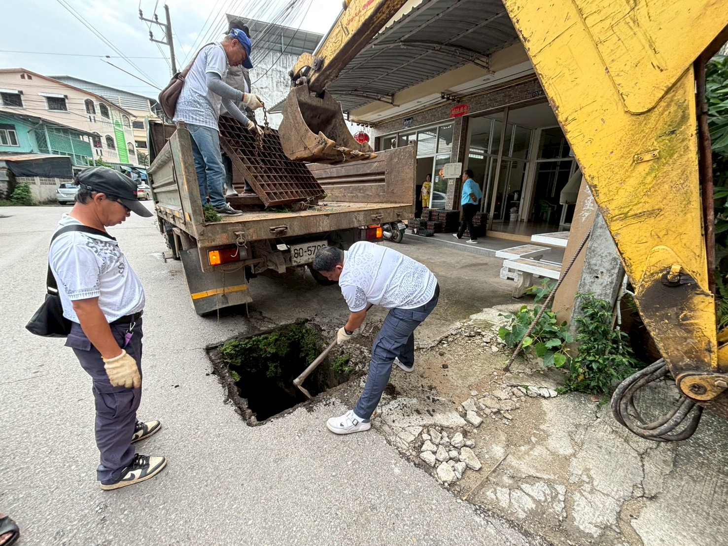 2. ได้เข้าดำเนินการเปลี่ยนฝาท่อระบายน้ำ บริเวณตลาดพาเจริญ สามแยกก่อนถึงธนาคารออมสิน