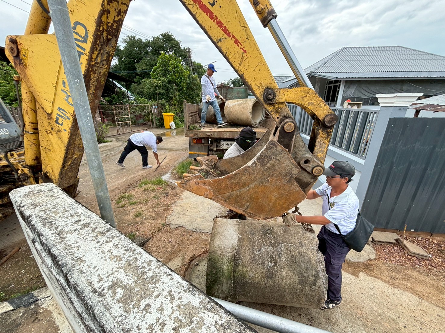 3. ได้เข้าดำเนินการขนท่อระบายน้ำ คสล.ขนาด 60 เซนติเมตร จากชุมชนสันต้นปินและชุมชนวัดหลวงไปเก็บโรงฆ่าสัตว์