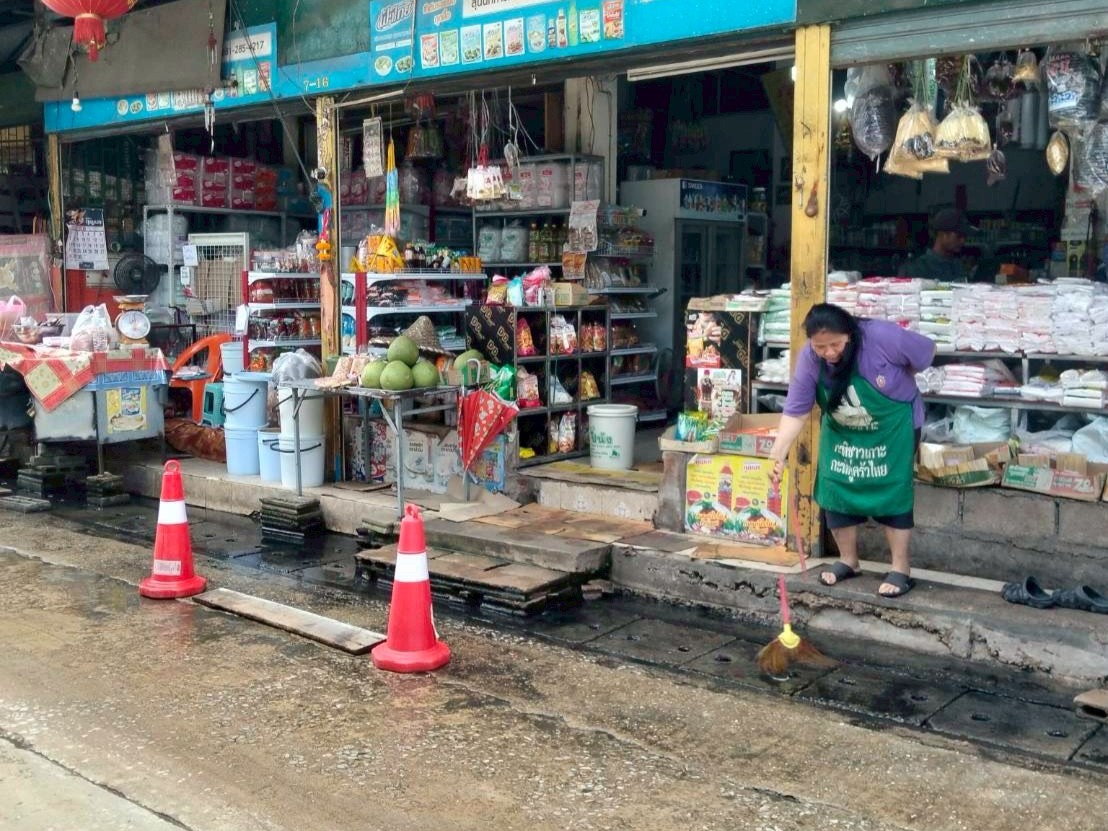 สำรวจจุดทำแผงกั้นเศษขยะในรางระบายน้ำ บริเวณตลาดพาเจริญ