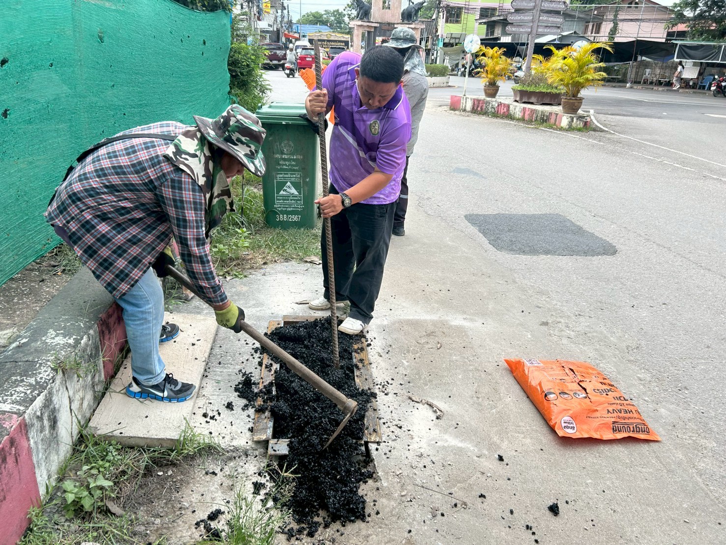2. ได้เข้าดำเนินการลงยางมะตอยปิดท่อรางระบายน้ำเก่า บริเวณวงเวียนหน้าโรงเรียนสรรพวิทยาคม จำนวน 1 ฝา