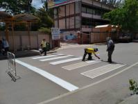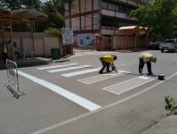 งานสาธารณูปโภค ฝ่ายการโยธา ร่วมกิจกรรมจิตอาสาร่วมกับงานจราจร สภ.แม่สอด ตีเส้นจราจรทางม้าลาย เพื่อเตรียมความพร้อมสำหรับการเปิดเรียนวันแรก
