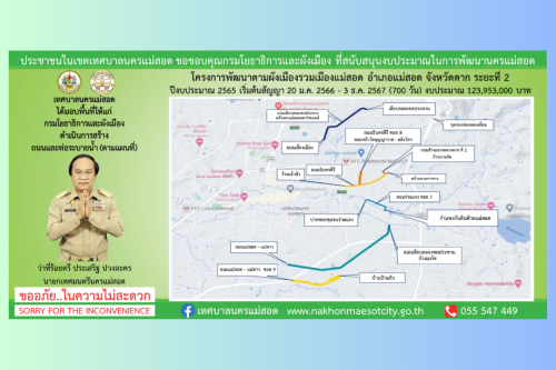 เทศบาลนครแม่สอด จึงขออภัยในความไม่สะดวก สำหรับประชาชนที่อาศัยและประชาชนที่สัญจรไปมาในเส้นทางดังกล่าว