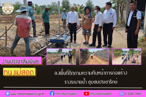 ว่าที่ร้อยตรี ประเสริฐ ปวงละคร นายกเทศมนตรีนครแม่สอด พร้อมด้วย คณะผู้บริหาร และเจ้าหน้าที่กองช่างสุขาภิบาล ลงพื้นที่ติดตามความคืบหน้าการก่อสร้างรางระบายน้ำชุมชนประชารักษ์ เพื่อเป็นการระบายน้ำเสียจากบ้านเรือนของประชาชนภายในชุมชน ลงสู่ทางระบายน้ำสาธารณะ เพื่อลดปัญหาน้ำท่วมขัง และนำดินที่ได้จากการขุดร่องระบายน้ำ ไปถมปรับพื้นที่ทางสัญจรในชุมชน