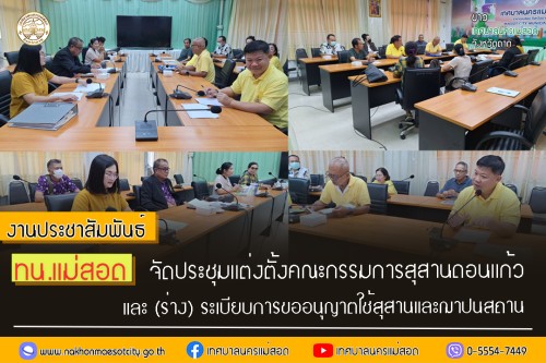 ว่าที่ร้อยตรี ประเสริฐ ปวงละคร นายกเทศมนตรีนครแม่สอด มอบหมายให้ นายเฉลิมเกียรติ ปัญญาสว่าง ผู้อำนวยการกองสาธารณสุขและสิ่งแวดล้อม พร้อมด้วย เจ้าหน้าที่กองสาธารณสุขและสิ่งแวดล้อม และตัวแทนชุมชนในเขตฯ ร่วมประชุมแต่งตั้งคณะกรรมการสุสานดอนแก้ว และ (ร่าง) ระเบียบการขออนุญาตใช้สุสานและฌาปนสถาน