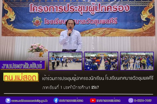 ว่าที่ร้อยตรี ประเสริฐ ปวงละคร นายกเทศมนตรีนครแม่สอด เป็นประธานการประชุมผู้ปกครองนักเรียนโรงเรียนเทศบาลวัดชุมพลคีรี ภาคเรียนที่ 1 ประจำปีการศึกษา 2567 พร้อมด้วย คณะผู้บริหาร สมาชิกสภาเทศบาล หัวหน้าส่วนราชการ คณะครู คณะกรรมการสถานศึกษาขั้นพื้นฐาน และผู้ปกครองนักเรียน เข้าร่วมการประชุมในครั้งนี้