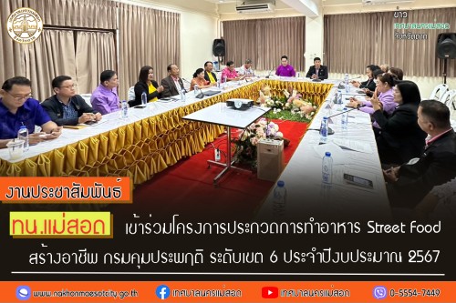 ว่าที่ร้อยตรี ประเสริฐ ปวงละคร นายกเทศมนตรีนครแม่สอด มอบหมายให้ ว่าที่พันตรี ดร.ไพฑูรย์ ปริญญาธรรมกุล ผู้อำนวยการกองยุทธศาสตร์และงบประมาณ เข้าร่วมโครงการประกวดการทำอาหาร Street Food สร้างอาชีพ กรมคุมประพฤติ ระดับเขต 6 ประจำปีงบประมาณ 2567 โดยกำหนดการประกวดการทำอาหารประเภทอาหารคาวและอาหารหวานเพื่อเป็นการเปิดโอกาส ให้ผู้ถูกคุมความประพฤติเข้าประกวด ได้นำเสนอผลงานด้านการทำอาหารและพัฒนาทักษะการทำอาหารจนสามารถต่อยอดเป็นอาชีพ ที่สร้างรายได้ที่มั่นคงเพียงพอต่อการดำรงชีพ รวมทั้งสามารถปรับเปลี่ยนพฤติกรรมให้ผู้กระทำผิดเห็นคุณค่าของตนเอง กลับคืน สู่สังคมโดยไม่หวนกลับไปกระทำผิดช้ำ