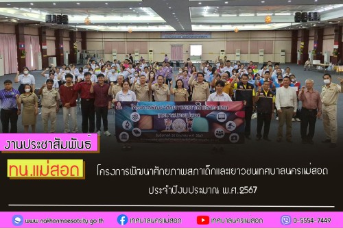 ว่าที่ร้อยตรี ประเสริฐ ปวงละครนายกเทศมนตรีนครแม่สอด มอบหมายให้ นายกรรณ กัณฑ์นิล รองนายกเทศมนตรีนครแม่สอด เป็นประธานในพิธี พร้อมด้วยคณะผู้บริหาร สมาชิกสภาเทศบาล รองปลัดเทศบาล ผู้อำนวยการกองการศึกษา และเจ้าหน้าที่ที่เกี่ยวข้อง เข้าร่วมโครงการพัฒนาศักยภาพสภาเด็กและเยาวชนเทศบาลนครแม่สอด ประจำปีงบประมาณ พ.ศ.2567 โดยมี นางกิตติวรา วิริยา รองปลัดเทศบาลนครแม่สอด เป็นผู้กล่าวรายงาน โดยมีวัตถุประสงค์ในการจัดโครงการเพื่อเสริมสร้างความรู้ความเข้าใจเกี่ยวกับความสำคัญของการจัดตั้งสภาเด็กและเยาวชน เพื่อพัฒนาศักยภาพของสภาเด็กและเยาวชนเทศบาลนครแม่สอด เพื่อส่งเสริมทักษะในด้านต่าง ๆ ของสภาเด็กและเยาวชน และเพื่อสร้างความสามัคคีให้กับสภาเด็กและเยาวชนเทศบาลนครแม่สอด