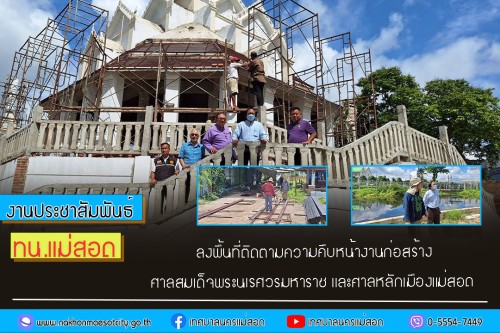 ว่าที่ร้อยตรี ประเสริฐ ปวงละคร นายกเทศมนตรีนครแม่สอด พร้อมด้วย คณะผู้บริหาร ประธานสภา สมาชิกสภาเทศบาลนครแม่สอด และเจ้าหน้าที่ที่เกี่ยวข้อง ลงพื้นที่ติดตามความคืบหน้างานก่อสร้างศาลสมเด็จพระนเรศวรมหาราช และศาลหลักเมือง เพื่อเร่งรัดติดตามความคืบหน้า และเพื่อให้การก่อสร้างดำเนินไปด้วยความเป็นระเบียบเรียบร้อยบรรลุตามวัตถุประสงค์ของโครงการ