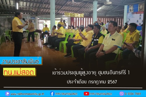 เมื่อวันศุกร์ ที่ 19 กรกฎาคม 2567 เวลา 10.30 น. ณ ที่ทำการชุมชนอินทรคีรี 1 อำเภอแม่สอด จังหวัดตาก