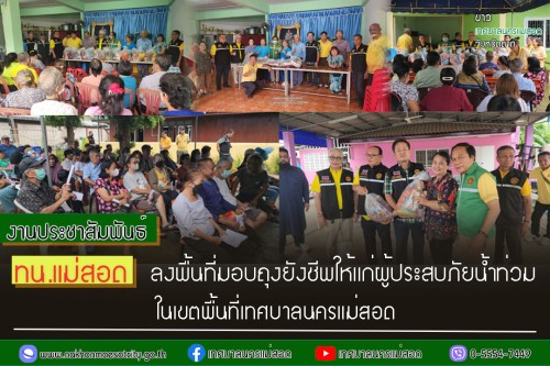 ว่าที่ร้อยตรี ประเสริฐ ปวงละคร นายกเทศมนตรีนครแม่สอด พร้อมด้วย คณะผู้บริหาร สมาชิกสภาเทศบาลนครแม่สอด และเจ้าหน้าที่ที่เกี่ยวข้อง ลงพื้นที่มอบถุงยังชีพให้แก่ผู้ประสบภัยน้ำท่วม ในเขตพื้นที่เทศบาลนครแม่สอด