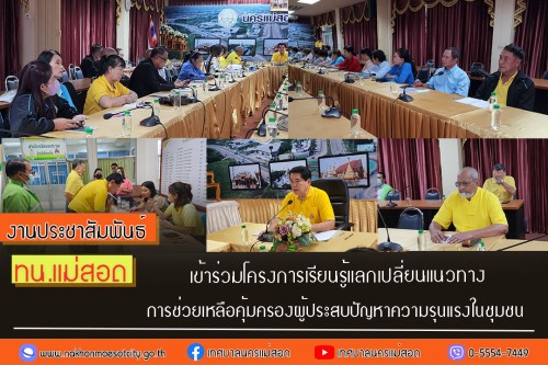 ว่าที่ร้อยตรี ประเสริฐ ปวงละคร นายกเทศมนตรีนครแม่สอด มอบหมายให้ นายกรรณ กัณฑ์นิล รองนายกเทศมนตรีนครแม่สอด นายสุวิทย์ คามณีวงศ์ พร้อมด้วย คณะบริหาร สมาชิกสภาเทศบาล และเจ้าหน้าที่ที่เกี่ยวข้องเข้าร่วมโครงการเรียนรู้แลกเปลี่ยนแนวทางการช่วยเหลือคุ้มครองผู้ประสบปัญหาความรุนแรงในชุมชน เทศบาลนครแม่สอด มูลนิธิสุวรรณนิมิต ร่วมกับศูนย์พึ่งได้ OSCC โรงพยาบาลแม่สอด และเครือข่าย มีความตระหนักถึงสถานการณ์ความรุนแรงต่อเด็กและสตรี ผลกระทบต่อชุมชน และข้อท้าทายในการให้ความช่วยเหลือผู้ประสบปัญหาความรุนแรง จึงร่วมกันจัดกิจกรรมโครงการ ฯ ให้กับเจ้าหน้าที่ฝ่ายปกครองท้องถิ่น ผู้นำชุมชนและผู้ปฏิบัติงานที่เกี่ยวข้องกับการช่วยเหลือคุ้มครองผู้ประสบปัญหาความ รุนแรงในพื้นที่ เพื่อให้การช่วยเหลือมีประสิทธิภาพมากขึ้น เกิดการประสานความ ร่วมมือในการช่วยเหลือคุ้มครองแก่ผู้ประสบปัญหาความรุนแรงให้สามารถเข้าถึงบริการทางสังคมและความคุ้มครองทางกฎหมายได้