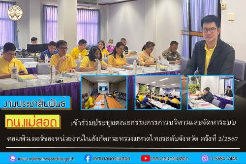 ว่าที่ร้อยตรี ประเสริฐ ปวงละคร นายกเทศมนตรีนครแม่สอด มอบหมายให้ นายสยาม มั่นเมือง นักจัดการงานทั่วไปชำนาญการ เข้าร่วมประชุม คณะกรรมการการบริหารและจัดหาระบบคอมพิวเตอร์ของหน่วยงานในสังกัดกระทรวงมหาดไทยระดับจังหวัดครั้งที่ 2/2567 และนางสาวศิริวรรณ แก้วฟู นักประชาสัมพันธ์ปฏิบัติการ เข้าร่วมประชุม คณะกรรมการการบริหารและจัดหาระบบคอมพิวเตอร์ของหน่วยงานในสังกัดกระทรวงมหาดไทยระดับจังหวัดครั้งที่ 2/2567 ในรูปแบบประชุมออนไลน์ผ่านระบบ WedEx โดยมีโครงการของเทศบาลนครแม่สอดจำนวน 1 โครงการ คือ โครงการจัดซื้อพร้อมติดตั้งระบบกล้องโทรทรรศน์วงจรปิด(CCTV) ในเขตเทศบาลนครแม่สอด ประจำปีงบประมาณ พ.ศ. 2566 วงเงิน 2 ล้านบาท